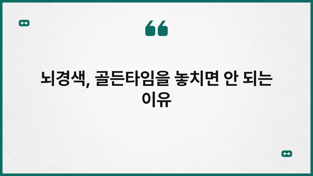 골든타임 내에 적절한 치료를 받으면 뇌경색의 후유증을 최소화할 수 있습니다. 혈전 용해제나 혈관 내 시술을 통해 혈류를 회복시키는 것이 가능해집니다. 이는 뇌세포의 손상을 줄이고, 환자의 회복 가능성을 높입니다.