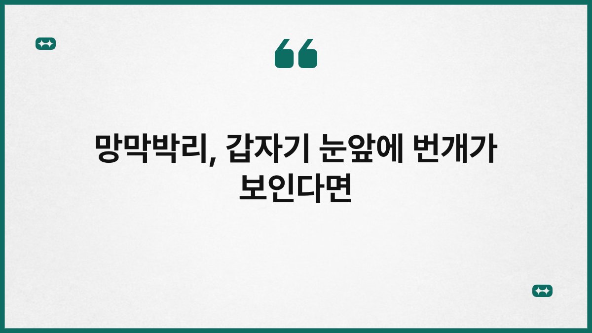 망막박리의 초기 증상 중 하나는 눈앞에 번개 모양의 빛이 보이는 것입니다. 이는 망막이 자극받아 발생하는 현상으로, 즉각적인 주의가 필요합니다. 이런 증상이 나타나면 즉시 안과 전문의를 찾아야 합니다. 조치를 취하지 않으면 시력이 급격히 저하될 수 있습니다.